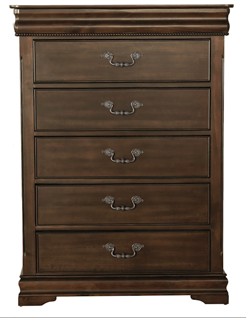This beautiful 5 Drawer Chest features classic handles, a cherry oak finish, and also has a hidden drawer for all your personal security needs.