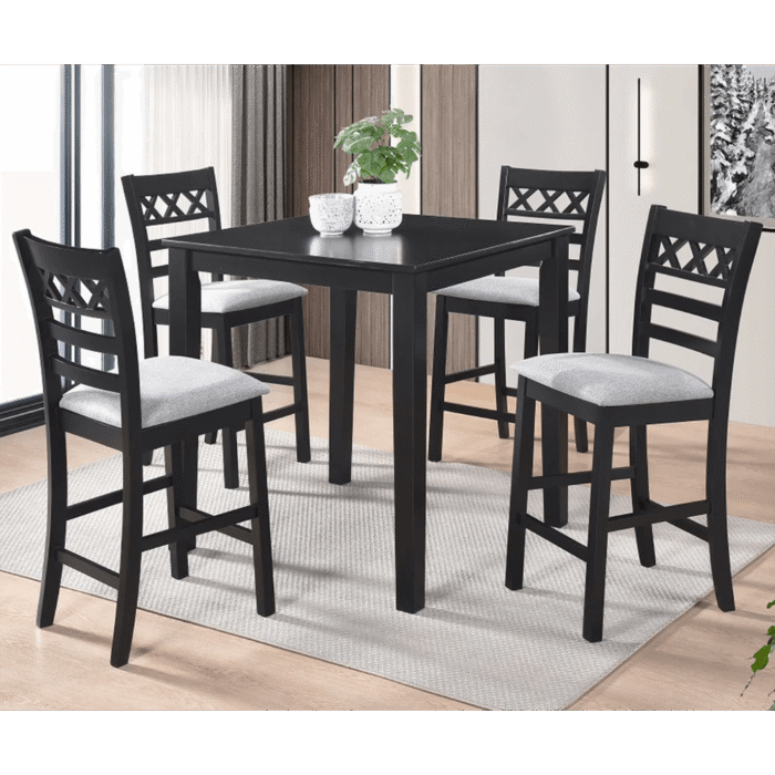 Elevate your dining experience with the Matrix 5-Piece Pub Dining Set, a perfect combination of contemporary style and functional design. Featuring an Okume veneer tabletop and sturdy square table legs, this set offers both durability and modern appeal. The ash gray fabric cushions and box seating ensure exceptional comfort during meals or casual gatherings. The chairs showcase a unique X-back design blended with a ladder-back style, adding a distinct visual element to your dining area. Complete with double stretchers for enhanced stability, this set is designed for everyday use. Available in sleek gray or bold black finishes, the Matrix Pub Dining Set effortlessly complements a variety of interior styles, making it an ideal centerpiece for your dining space. Whether you’re hosting friends or enjoying family meals, this set delivers sophistication and functionality in one package.