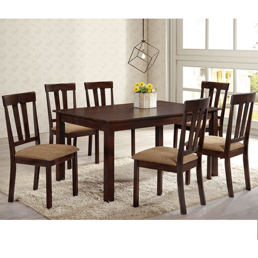 7 Piece Brown Cherry Dining Table Set By Nexoes