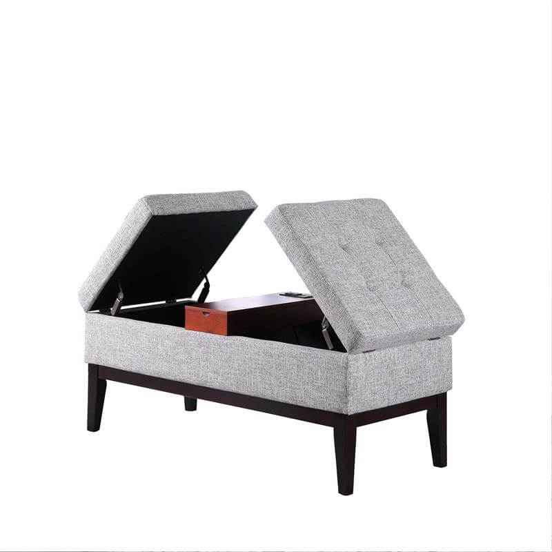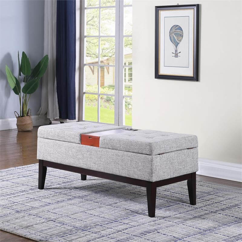18″ Charlton Dual Lift Storage Bench With Charging in Light Gray By Ore International