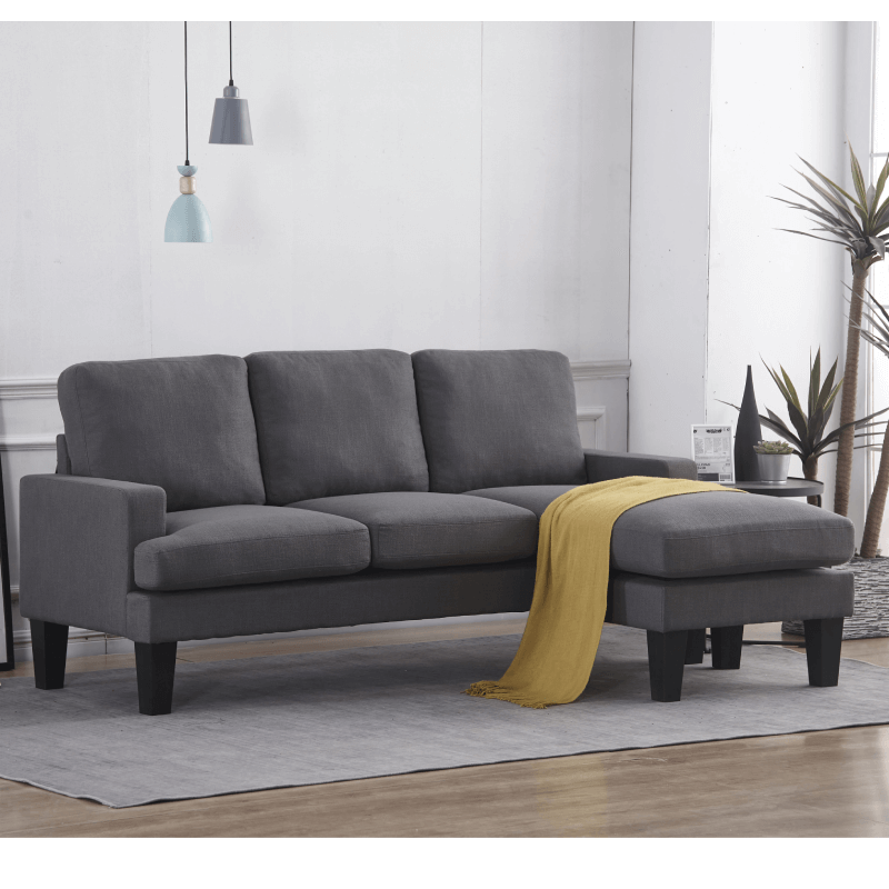 This classy sofa chaise features a dark grey fabric and a reversible chaise to help you relax with your feet up after a long day.