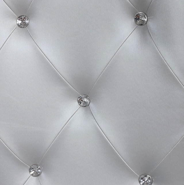 Shine and polish your dining room for pure glamour. Tempered glass and mirrored panels create a sophisticated elegance while the silver finish molds the details together for a luxurious dining set. Light up your prized collectibles in the glass-encased cu Transitional Silver Tempered Glass, Solid Wood, Wood Veneer, Others 18″ Expandable Leaf 5mm Tempered Glass & 5mm Mirror Padded Leatherette Chairs Button Tufted Solid Wood, Wood Veneer & Others* Matching Curio