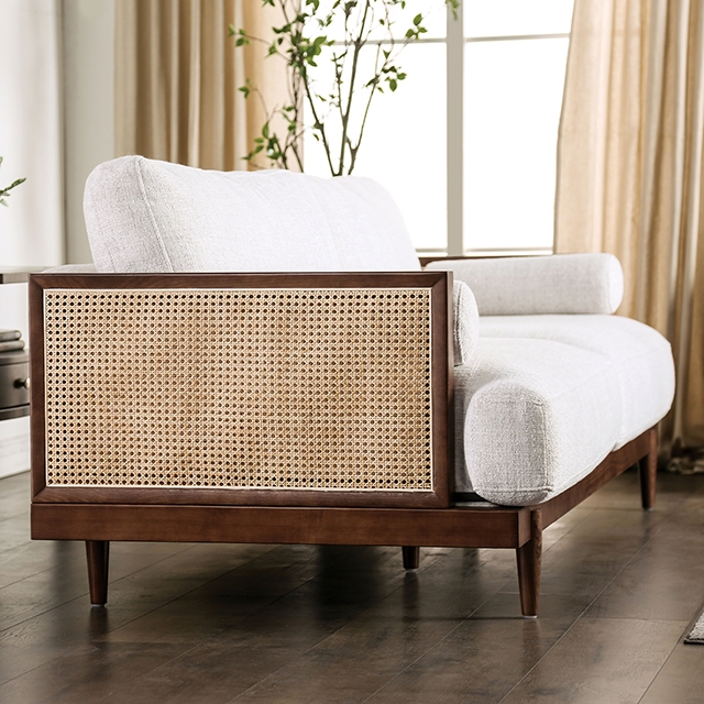 Tags: 3044, ash, Ash Wood Trim, beige, Beige/Walnut, Feather Fiber Pillow Construction, Furniture of America, Mid Century Modern, Rattan Details, Reversible Loose Pillow Back, red, Side Bolster Pillow, tan, Tapered Wooden Leg, Vendor Warehouse, walnut, Webbing Seat Suspension