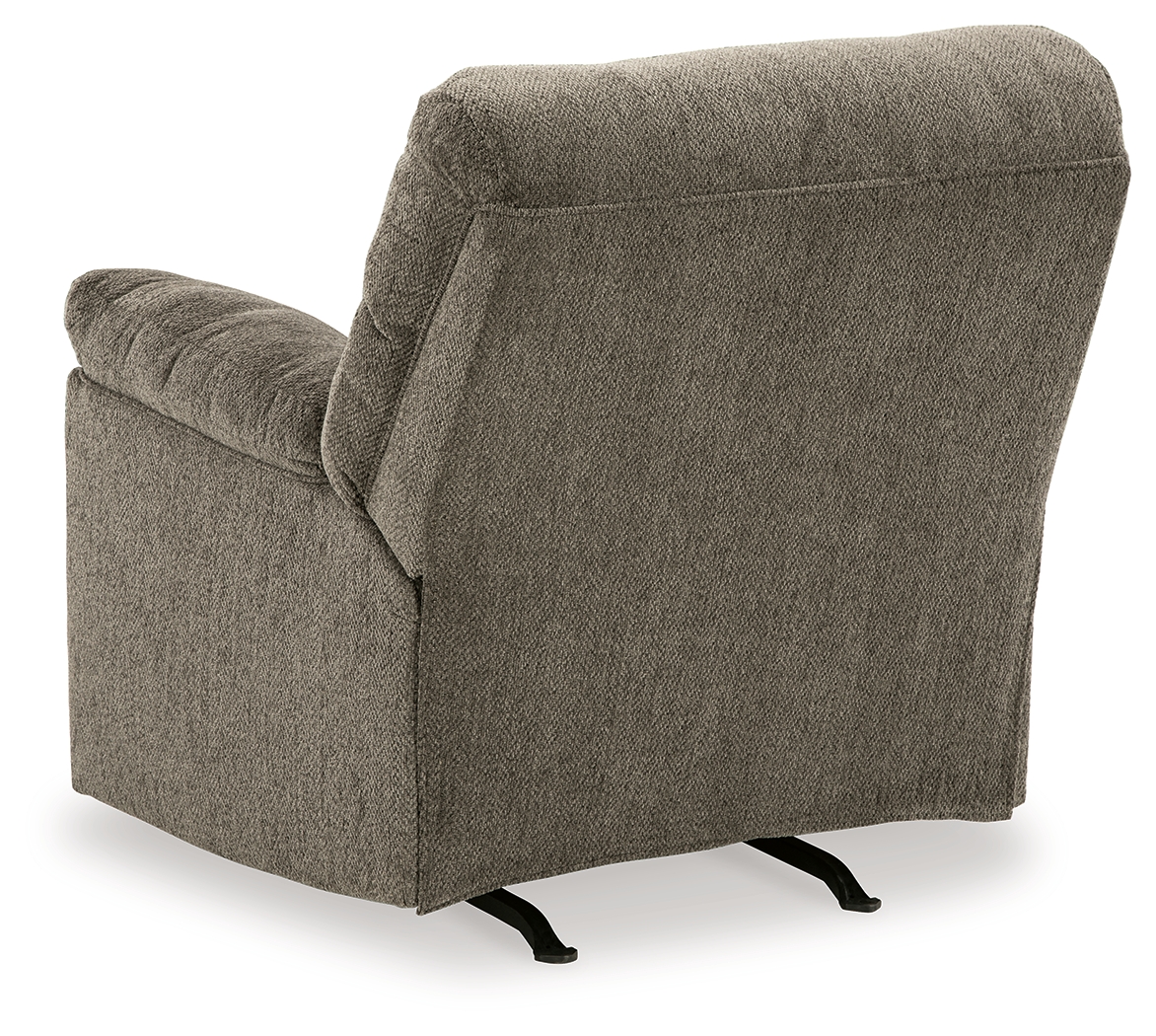 Sincere in its styling, this rocker recliner invites a relaxed sensibility into your space. Its neutral upholstery has a universal appeal, with pull-tab reclining making it easy to kick back in comfort. Providing high-quality functionality at an affordable price, this recliner marries well with a myriad of design aesthetics. Dimensions: 39”W x 41”D x 41”H Assembly Instructions: https://www.ashleydirect.com/GraphicsVault/Assembly_Instr/RECLINER-MOTION BACK ASSEM.pdf