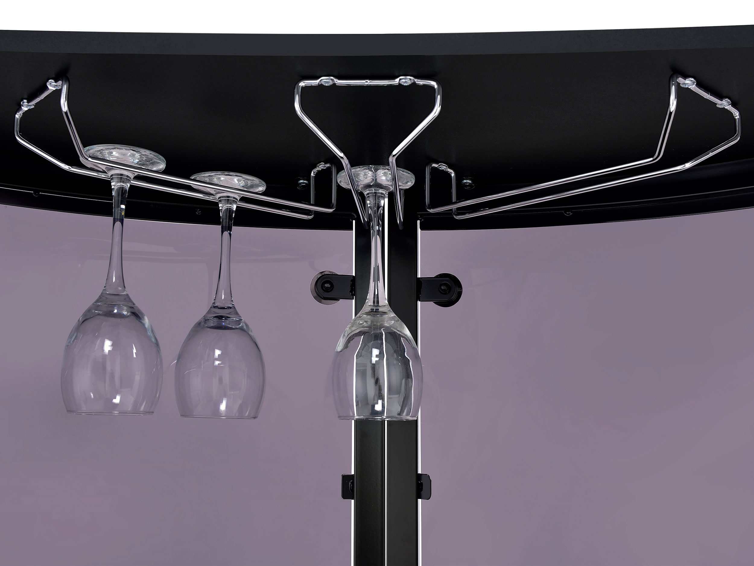 Beautifully crafted with high-quality acrylic panels and a clear glass top, this contemporary bar unit lets you entertain in style. Its smooth, curved silhouette gives it an elegant appearance. With a spacious storage area, it leaves plenty of room for all of your bartending needs. A convenient stemware rack completes its convenient appeal. Whether you’re hosting a swanky soiree or a casual cocktail hour, this bar unit is ideal for any occasion.