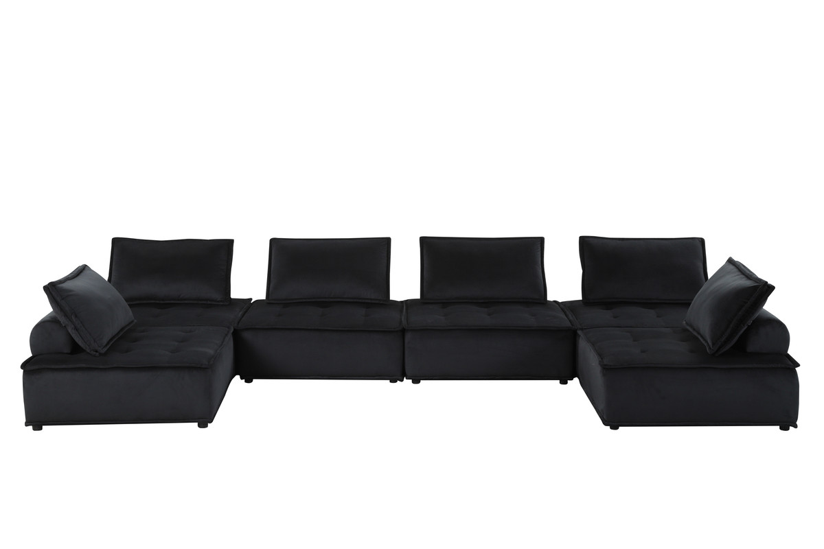 Anna 160″W Black Velvet 6-Seater U-Shape Modular Sectional Sofa – Lilola