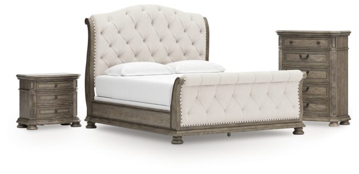Ardenfield California King Sleigh Bed, Chest and Nightstand – Ashley Direct