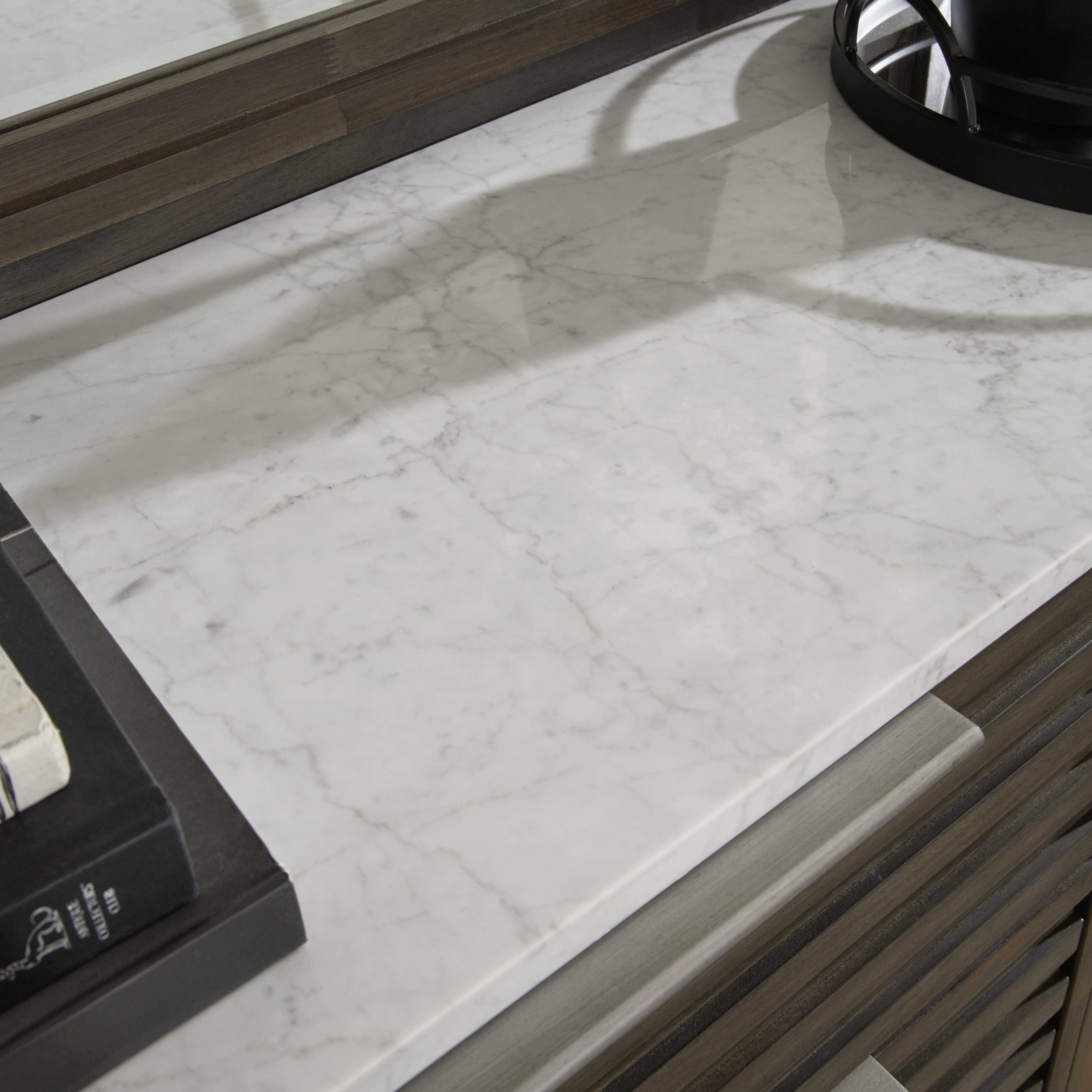 Clean lines lend sophistication and structure to this dresser with mirror. Its complex rich grayish brown finish contrasts perfectly with a white marble top, while the streamlined silhouette features overlay slats to create visual interest. A metal base and bar pulls in a low-sheen steel finish add to this piece’s contemporary vibe. Dimensions: 62.25”W x 18”D x 71.75”H Assembly Instructions: https://www.ashleydirect.com/GraphicsVault/Assembly_Instr/B786-31_AIS.pdf|https://www.ashleydirect.com/GraphicsVault/Assembly_Instr/B786-36_AIS.pdf