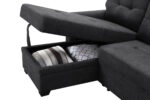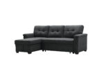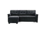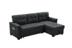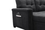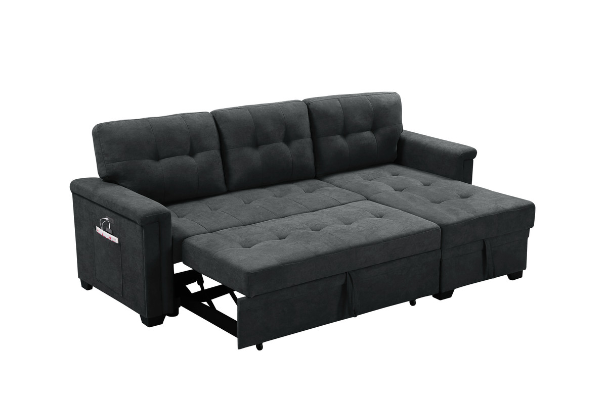 Ashlyn 84″W Dark Gray Woven Fabric Sleeper Sectional Sofa Chaise with USB Charger and Tablet Pocket – Lilola