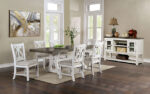 A unique ‘H’ design forms the legs that attach to the horizontal bases from which subtle feet emerge. It portrays a rustic flavor with a distressed brushed finish that is nicely offset by the vibrancy of the rich wood gr Rustic Distressed White/Gray Solid Wood, Wood Veneer, Others Pronounced Wood Grain Top