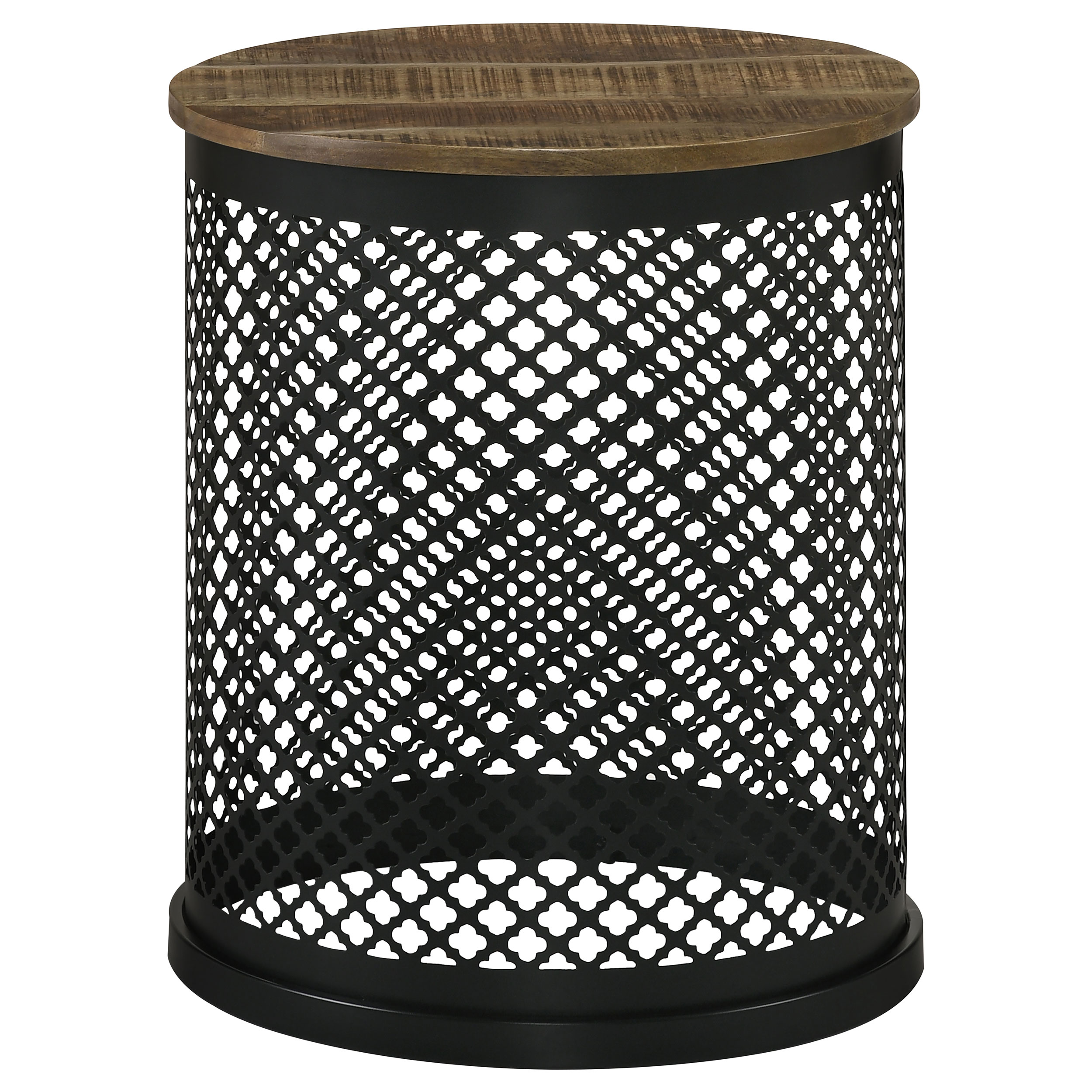 Aurora Round Drum Base Accent Side Table Natural and Black – Coaster
