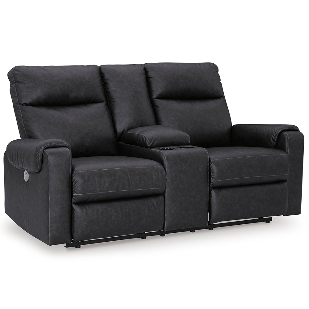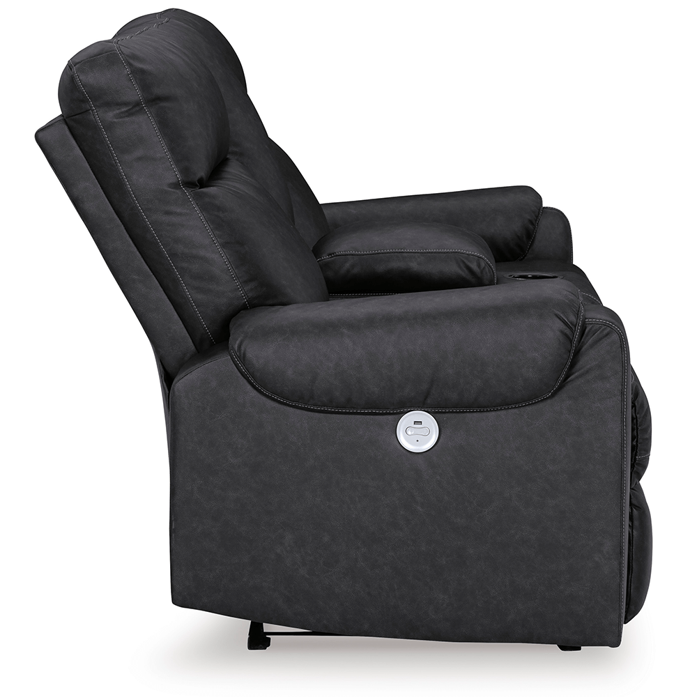 You don’t just want to recline. You want to recline in high design. The Axtellton power reclining loveseat’s clean lines and supple faux leather are out to capture your heart with style and comfort. Easily tuck away remotes or gaming controllers and keep drinks close by with its handy console. This loveseat gives you the upscale look you want for less—simply take a seat, raise your legs and relax.