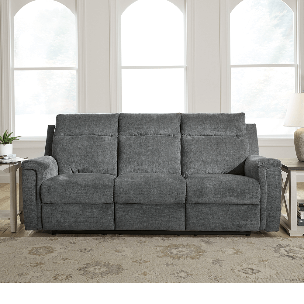 The ability to go from fully upright to relaxed and stretched out, all at the touch of a button, awaits. A beautiful blend of plush upholstery and casual style, the Barnsana power reclining sofa invites you to sink into ultimate comfort. Whether you’re hosting guests or lounging alone, you’ll find it hard to leave your living room—that’s a given.