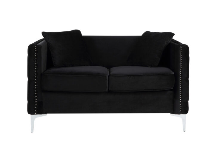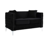 Bayberry 53″W Black Velvet Loveseat with 2 Pillows – Lilola