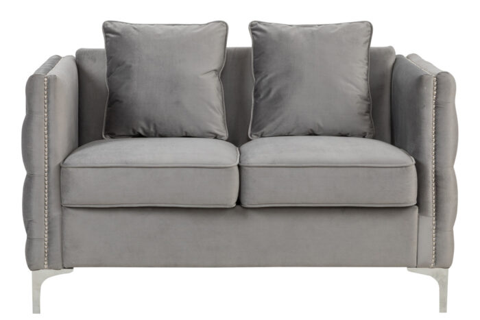Bayberry 53″W Gray Velvet Loveseat with 2 Pillows – Lilola