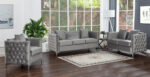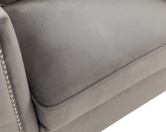 Tags: 10" Back Height, 2 Throw Pillows Included, 20.5" Seat Height, 21.5" Seat Depth, 42" Seat Width, 7" Seat Cushion Thickness, Chrome Metal Legs, Foam Filled Seats with Pocket Coil Springs, gray, Handmade Button Tufted, Handmade Nailhead Trim, Non-removable Tight Back Cushion, Removable Loose Seat Cushion, velvet
