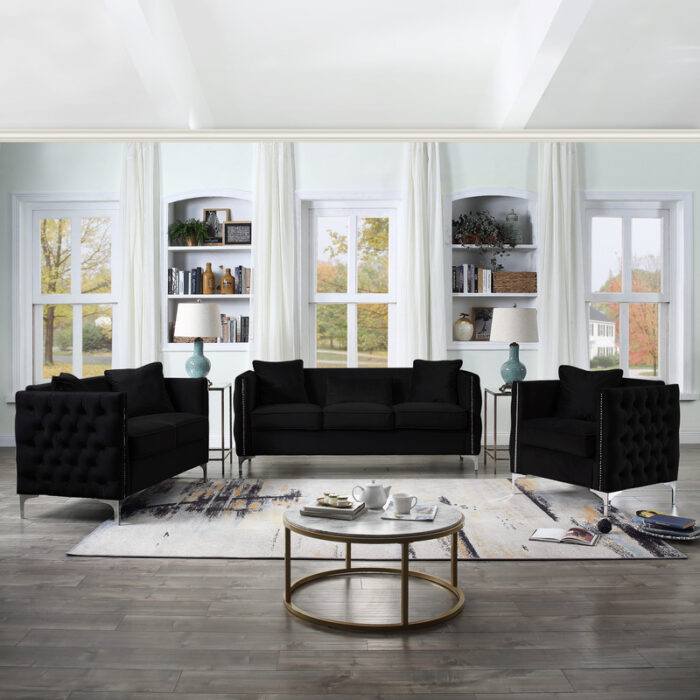 Bayberry Black Velvet Sofa Loveseat Chair Living Room Set – Lilola