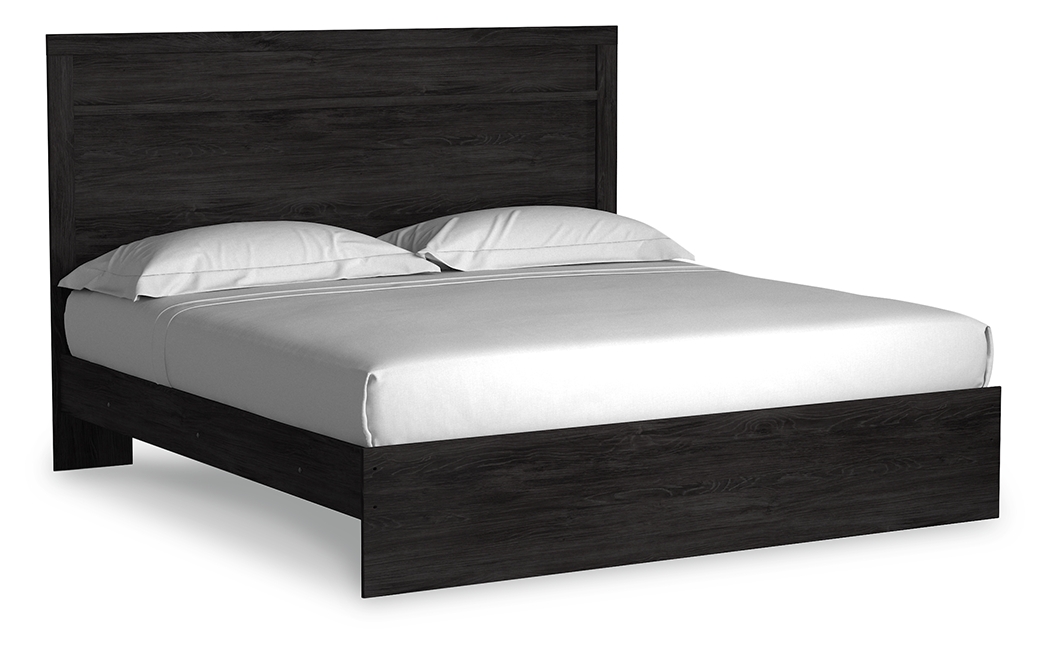 With its clean-lined look and modern attitude, this king panel bed is a fresh style awakening. A warm charcoal hue over replicated oak grain easily complements other furniture finishes. The simple, unadorned profile is given depth and dimension with the addition of plank-style moulding on the headboard—proof that beauty lies in the details. Dimensions: 80”W x 82”D x 53”H Assembly Instructions: https://www.ashleydirect.com/GraphicsVault/Assembly_Instr/10038721.pdf|https://www.ashleydirect.com/GraphicsVault/Assembly_Instr/134917.pdf