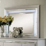 Specifically designed to accentuate a glamorous feel, this bedroom collection brings a combination of class and contemporary style to your bedroom. Crocodile embossed veneer and silver lining panels stand out throughout every piece while the button tufted Contemporary Silver Mirror, Solid Wood, Wood Veneer, Others 3mm Mirror Inserts LED Light on Mirror