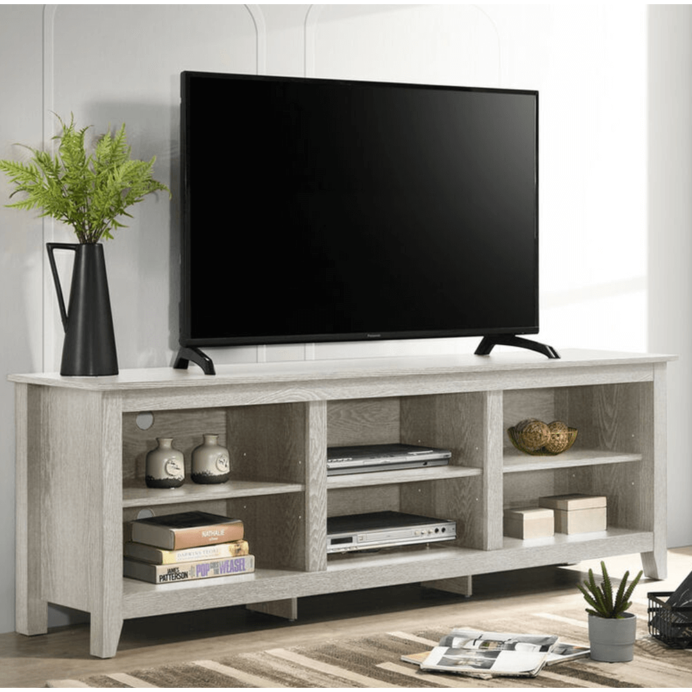 Tags: 70 inch, In Store Now, light grey, shelves, TV Stand
