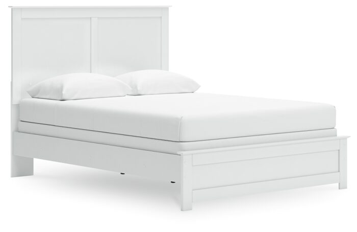Clean, crisp and fresh. This queen panel bed masters the art of understated elegance. Whether you’re looking to exude an air of cottage-chic flair or a modern classic vibe, its easy-to-love look makes just the right statement. And the solid white finish has the versatility to pair with your favorite pops of color. Dimensions: 64.5”W x 84.5”D x 53.5”H Assembly Instructions: https://www.ashleydirect.com/GraphicsVault/Assembly_Instr/134917.PDF|https://www.ashleydirect.com/GraphicsVault/Assembly_Instr/10539356.pdf