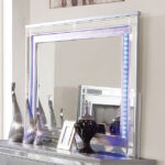 Get the most out of your bedroom with this contemporary style mirror. Available in 2 finishes. Contemporary Silver Mirror, Solid Wood, Wood Veneer, Others Crocodile-Textured Detail Mirror Trim LED Light in Mirror