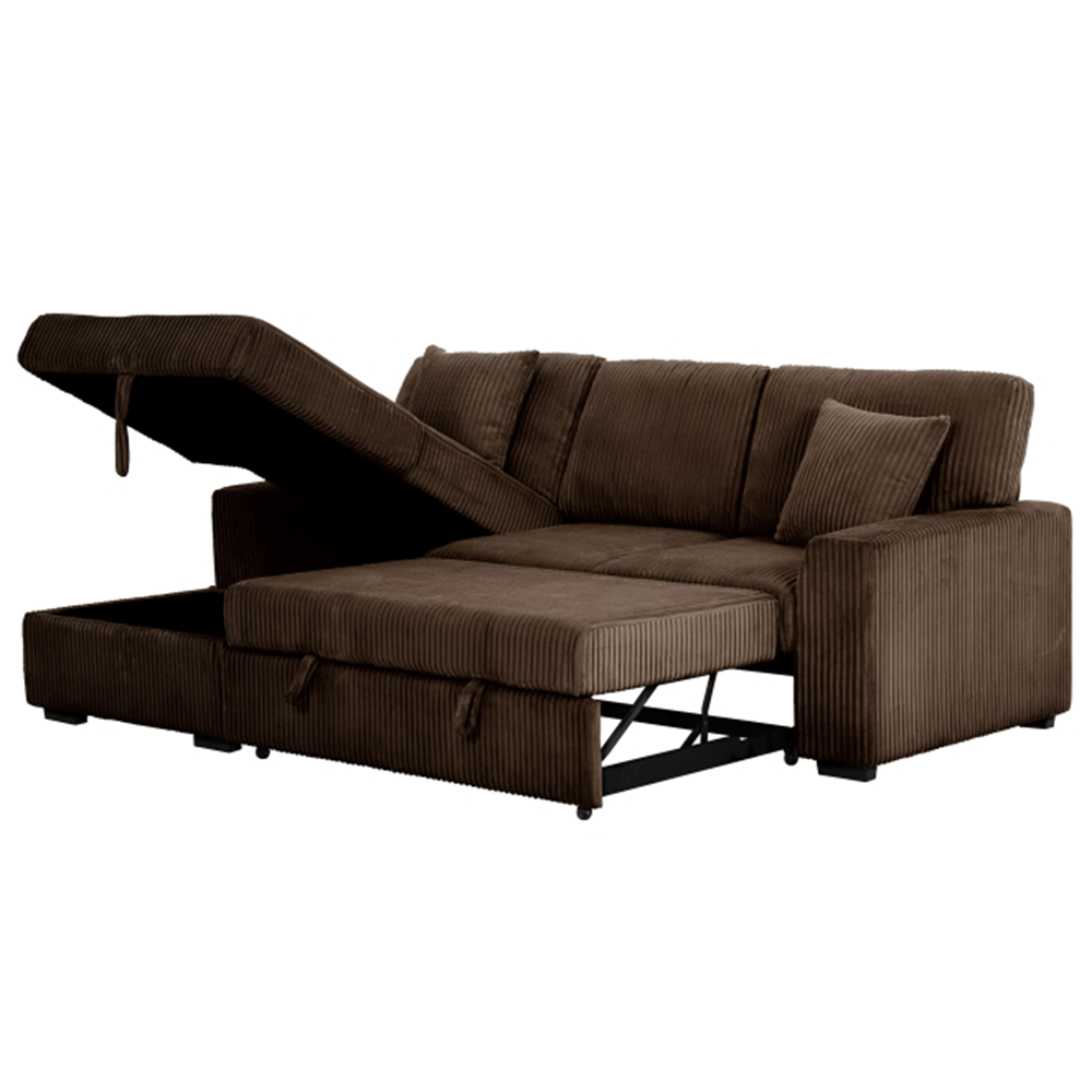 Brown Corduroy Fabric Pull Out Sectional Sofa & Storage LAF By Milton Green Stars