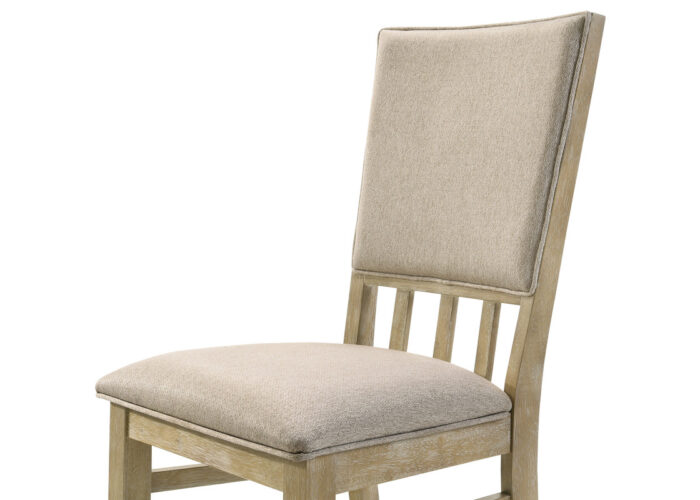 Tags: 18" Seat Height, armless, Chair Size: 19"W x 22"D x 39"H, Cushioned Seat, Ergonomic Seat, fabric, Natural Wood Distressed Finish, solid wood, Wheat