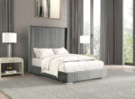 Cadwell Contemporary Bed in Gray features Fur Chenille Fabric and Mattress Ready. Contemporary Gray Wood, Fabric, Engineered Wood Fur Chenille Fabric Mattress Ready