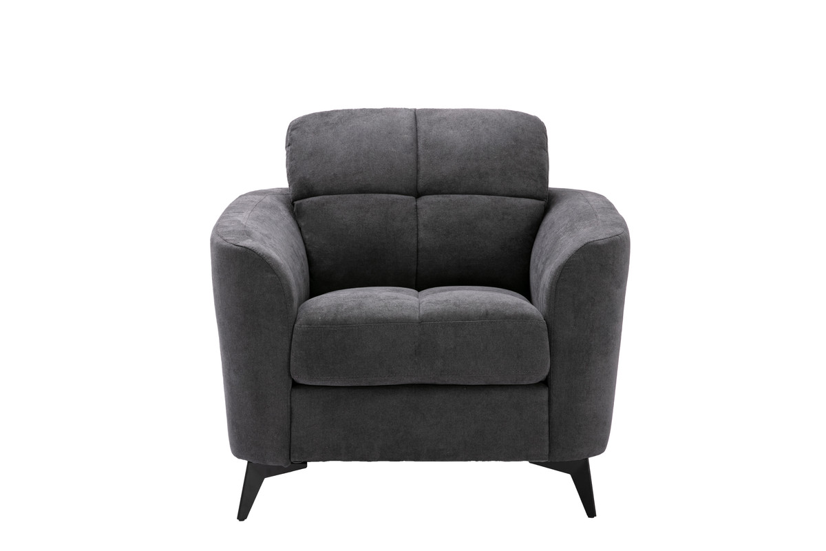 Tags: 18" Seat Back Height, 19.5" Seat Height, 21.5" Seat Depth, 21" Seat Width, 22" Arm Height, 5.5" Leg Height, Black Metal Legs, gray, Pocket Coil Seating, Tufted Cushion, Woven