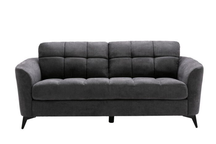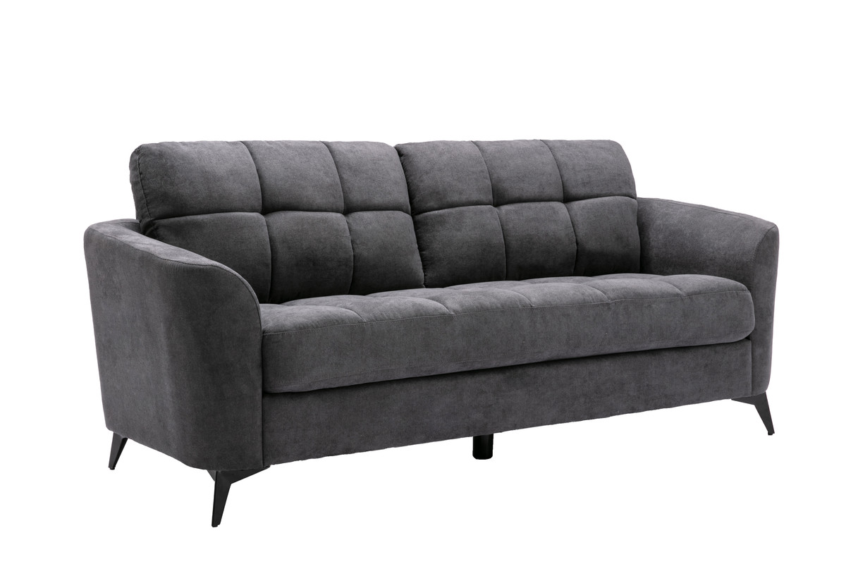 The Callie 3 piece collection provides world-class comfort and style with a tufted cushion design and black metal legs. A great look for formal gatherings yet perfect for the family as well. The comfortable fabric will keep guests satisfied and looking elegant while the black metal legs will blend luxuriously into a wide selection of rugs. Set includes 1 Sofa, 1 Loveseat and 1 Chair.