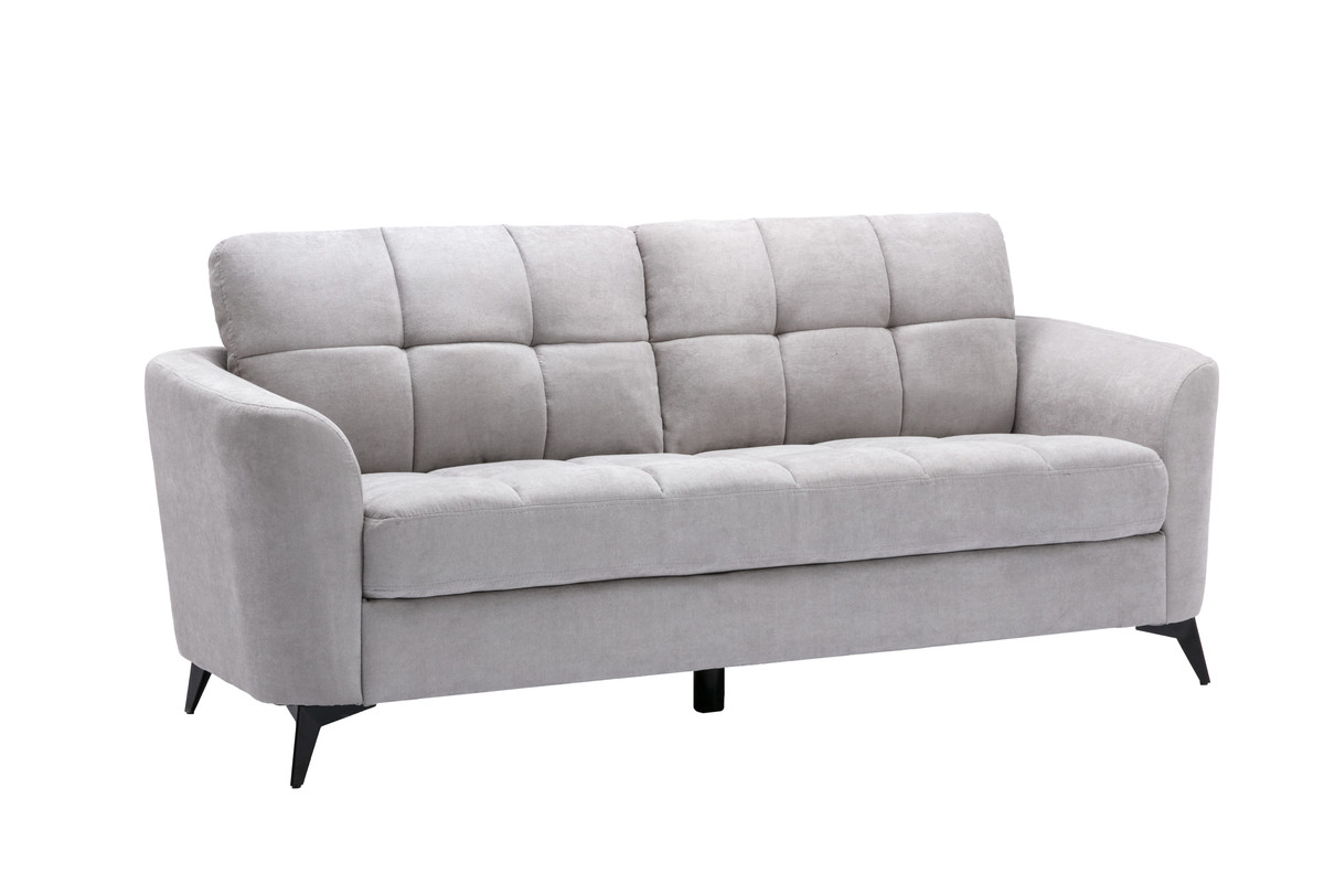 The Callie 3 piece collection provides world-class comfort and style with a tufted cushion design and black metal legs. A great look for formal gatherings yet perfect for the family as well. The comfortable fabric will keep guests satisfied and looking elegant while the black metal legs will blend luxuriously into a wide selection of rugs. Set includes 1 Sofa, 1 Loveseat and 1 Chair.