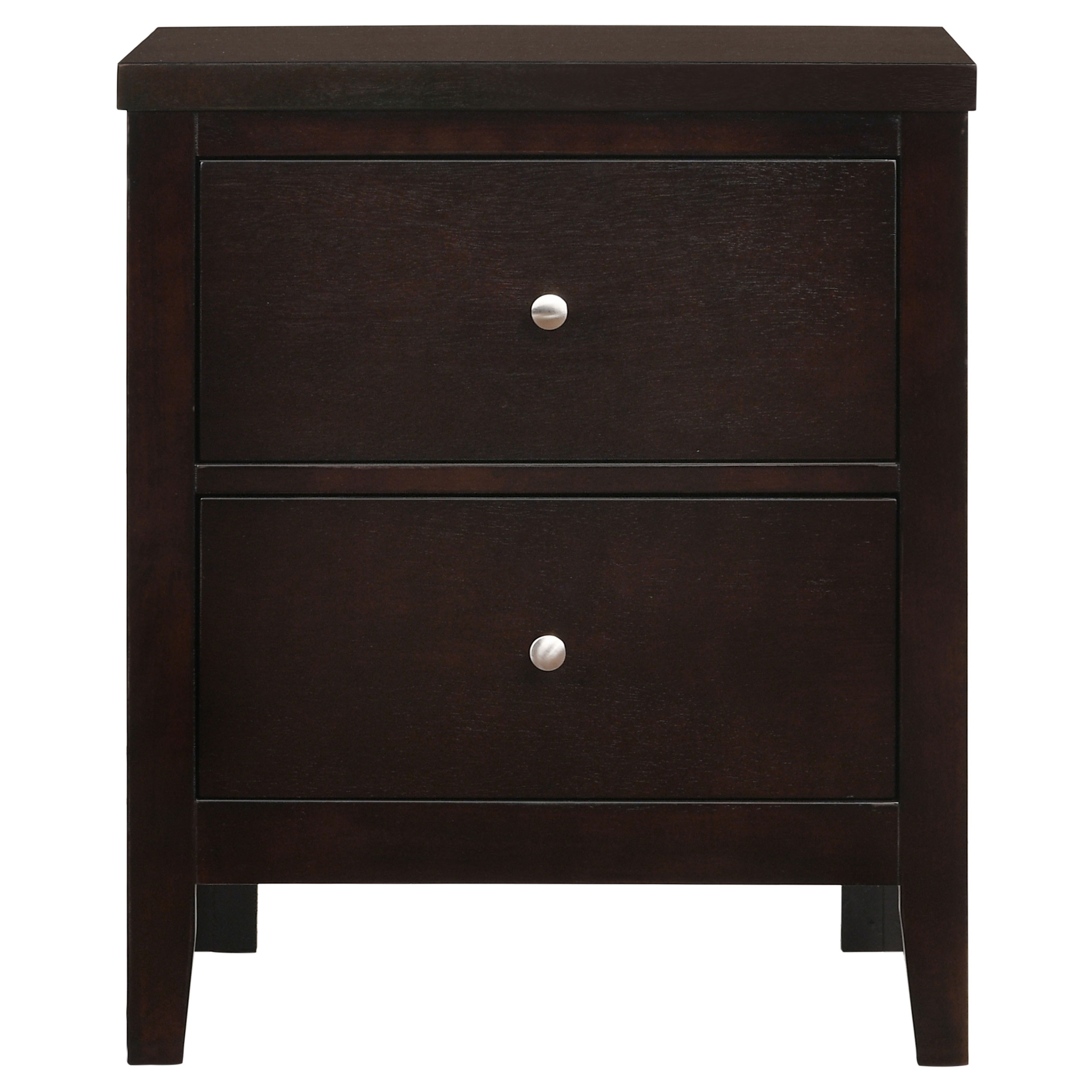 The Carlton collection is highlighted by this impressive 4-piece bedroom set that features black leatherette padding throughout. The high headboard and low footboard of the bed have vertical leatherette padded paneling for sumptuous style and majesty. The nightstand has two deep drawers and a table top for a matching table lamp. The dresser includes six deep drawers and a spacious top for the nearly-square mirror, which features padded leatherette on its top. The black leatherette of the set is handsomely offset by a warm cappuccino finish.