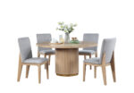 Caspian 5 Piece 59″W Round Oak Finish Dining Table Set with Gray Chairs – Lilola