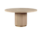 Elevate your dining experience with the timeless beauty and exceptional craftsmanship of our Caspian Oak Finish 5-Piece Dining Set. This set includes a dining table and four matching dining chairs, offering a complete dining solution that exudes sophistication and charm. The table, with its generous 59″ width, provides ample space for all your dining needs. Its exquisite oak veneer finish adds warmth and elegance to your dining space. The sturdy pedestal base of the table not only provides stability but also allows for comfortable seating arrangements, eliminating the inconvenience of awkward table legs that get in the way of your guests. To add a touch of opulence, the table features a striking golden iron ring on the pedestal base, elevating the overall design. Create lasting memories around this exquisite 5-piece dining set. Order now to transform your dining space into a haven of elegance and charm, where every meal becomes a delightful experience shared with family and friends.