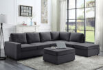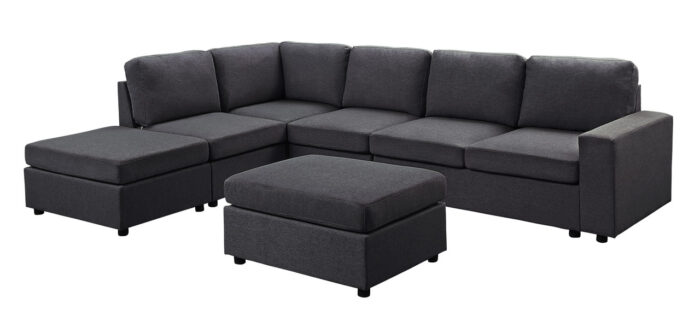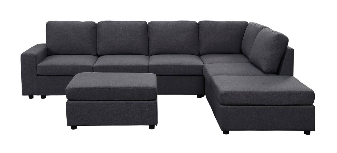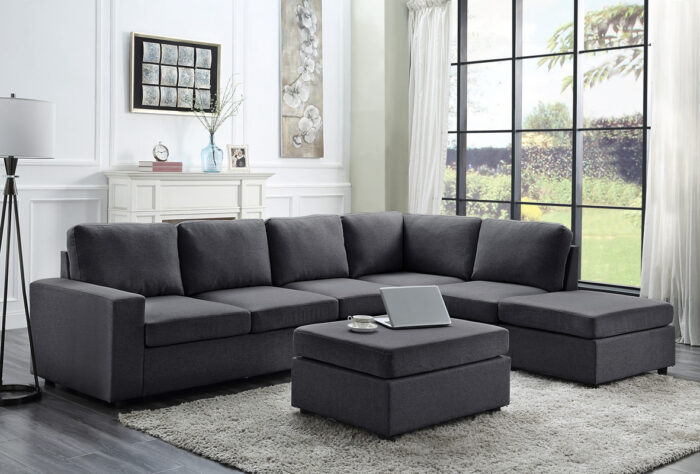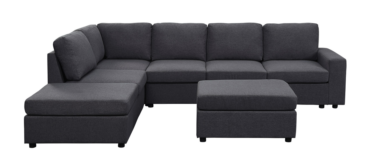 Cassia 120″W Modular Sectional Sofa with Ottoman in Dark Gray Linen – Lilola
