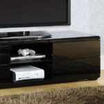 Finished in white or black high gloss lacquer, this modern TV console has room for the largest TV, full extension drawers for storage and open shelving for easy access to media components. Contemporary Black Lacquer, Metal, Wood, Others High Gloss Lacquer Coating Full Extension Drawers Rear Wiring Access