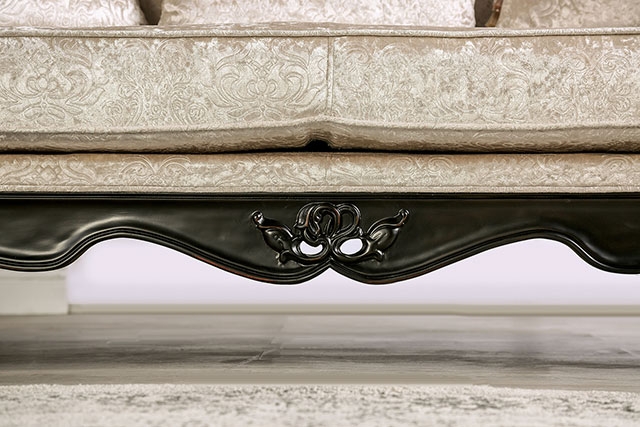 Traditional Black/Off-White Fabric, Solid Wood, Others Diamond Tufted Back Crown Molding Carved Details Cabriole Style Legs Box Seat Cushion w/ Welt Accent Pillow Included Wing Back Design