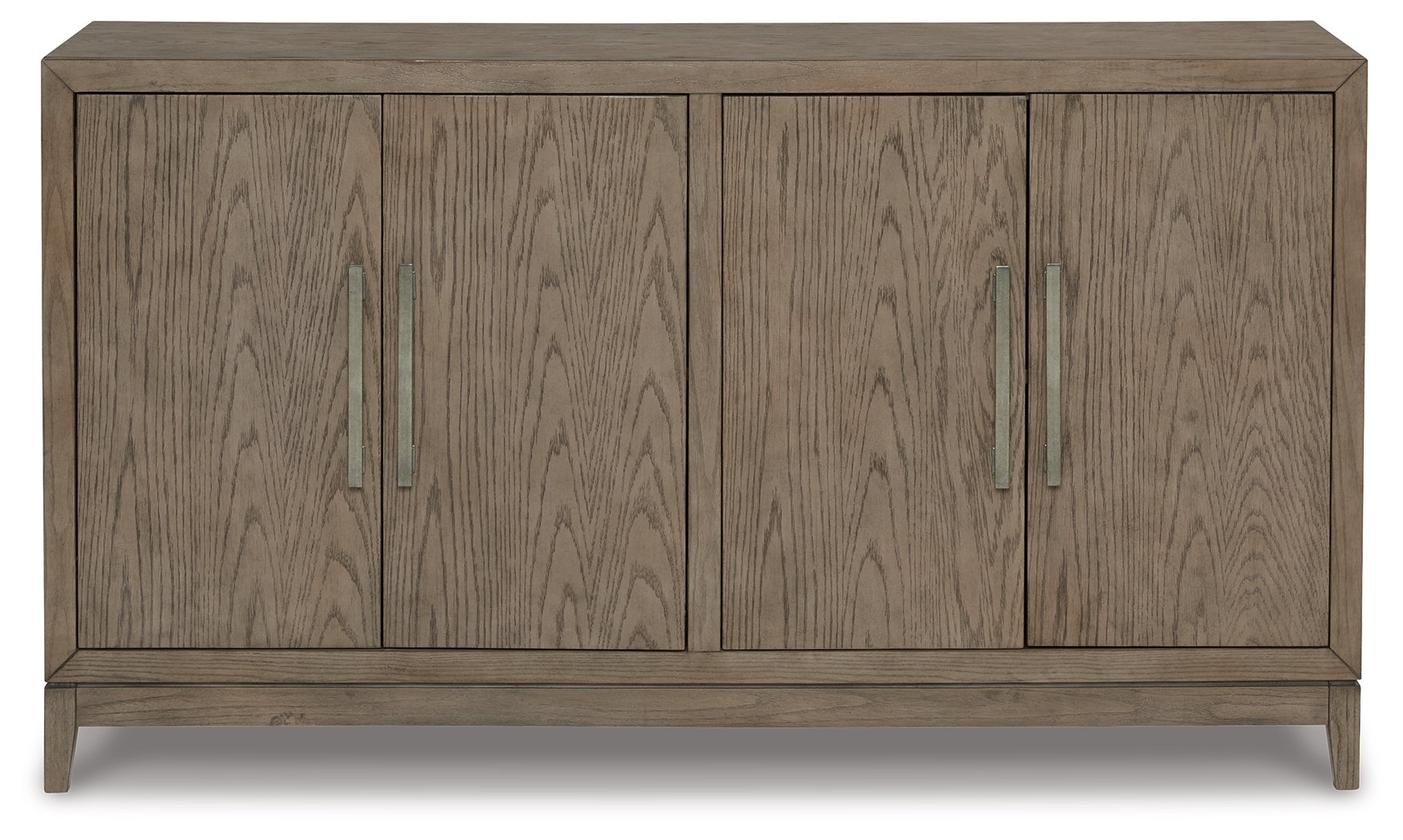 You want your dining room to reflect your refined sensibilities while remaining forward-thinking in design. The simple silhouette of this dining server opens the door to a dining room with the curated look and subtle flair you desire. The piece’s elegant waxy gray finish gets an added touch of luxury with striking metal bar pulls in a light pewter tone. Two double door cabinets, each with an adjustable shelf, allow you to store in streamlined style. Dimensions: 64”W x 18”D x 36”H Assembly Instructions: https://www.ashleydirect.com/GraphicsVault/Assembly_Instr/D983-60_AIS.pdf