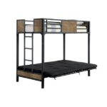 Inspire a utilitarian lifestyle with this industrial styled bunk bed. The combination of metal and wood is a beautiful blend of man and earth, bringing both cold and warm elements to the bedroom. The guarded top bunk offers a sense of peace and can easily Industrial Black Metal, Wood Full Metal Construction Attached Ladder Nailhead Accents Wood Panels