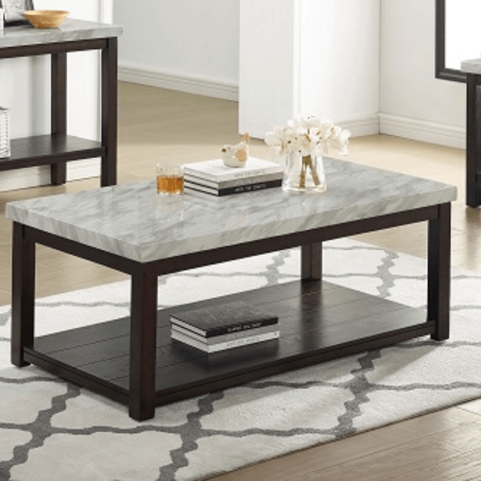 Cocktail Table in Dark Brown and Grey Faux Marble Finish By Crown Mark