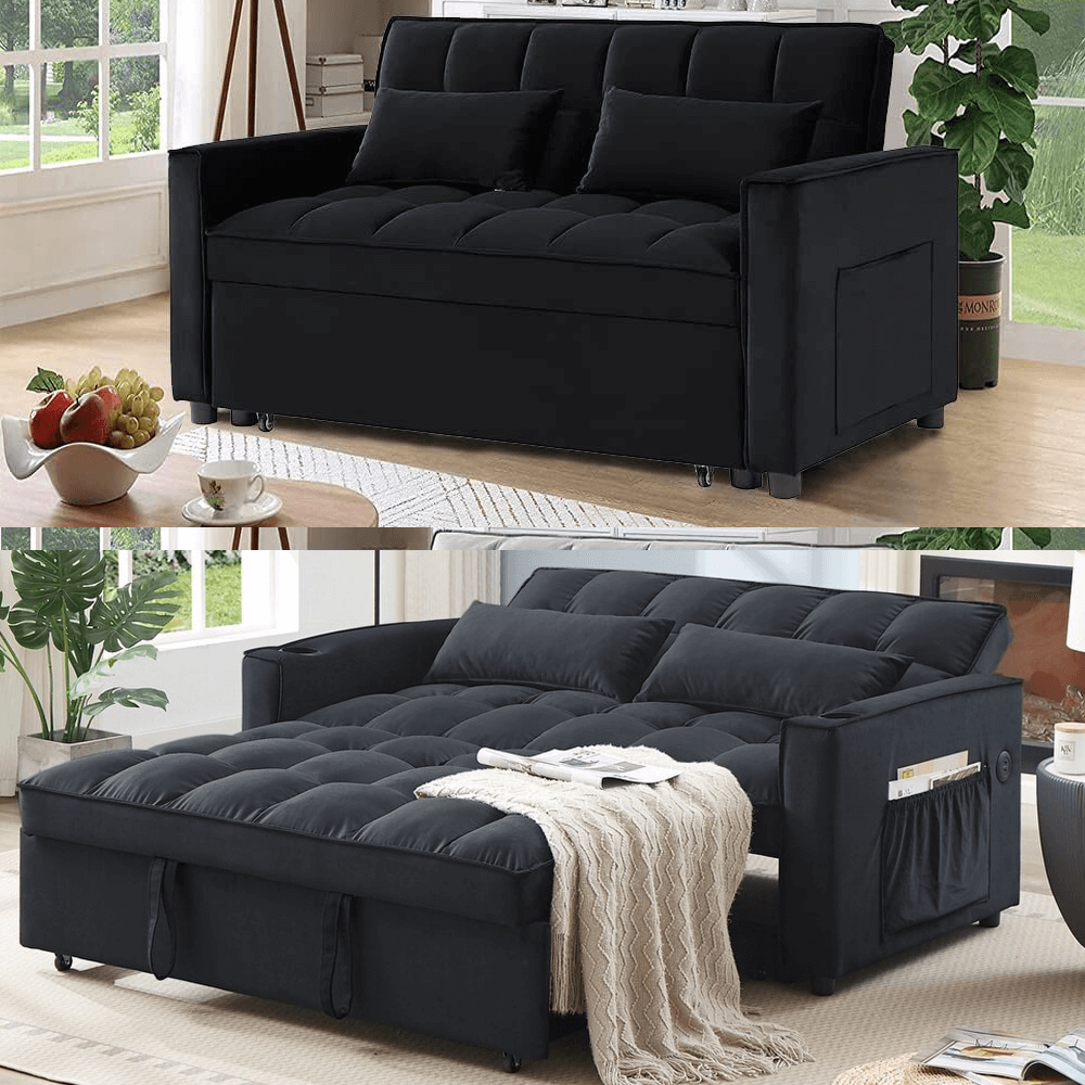 Convertible Velvet Sleeper Sofa Bed in Black By Simply Relax