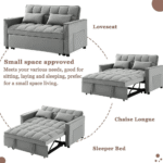 Pull the included handle and it slides out on its rollers to make loveseat sofa converts to sleeper bed easily, No matter what room it is, whether it is a large room or a small room, this is your best choice! The twin-sized sleeper bed can accommodate your overnight guests.Sleeper Size: 66.6″L*46.5″W.