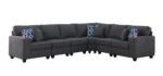 Cooper 125″W Stone Gray Woven Fabric 6Pc Reversible L-Shape Sectional Sofa with Cupholder – Lilola
