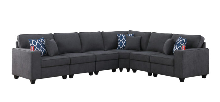 The Cooper Collection has all the important features you want – comfort, style, quality! This beautiful modular sofa sectional will fit into any living room and impress your guests! The modular pieces allow you to customize the layout your way. The sectional has built-in cupholders on both arm rests to hold your most refreshing drinks. The comfortable woven fabric with 6 matching throw pillows will light up your living room with the trendiest of looks. You can welcome multiple guests where everyone will be able to enjoy entertainment together.