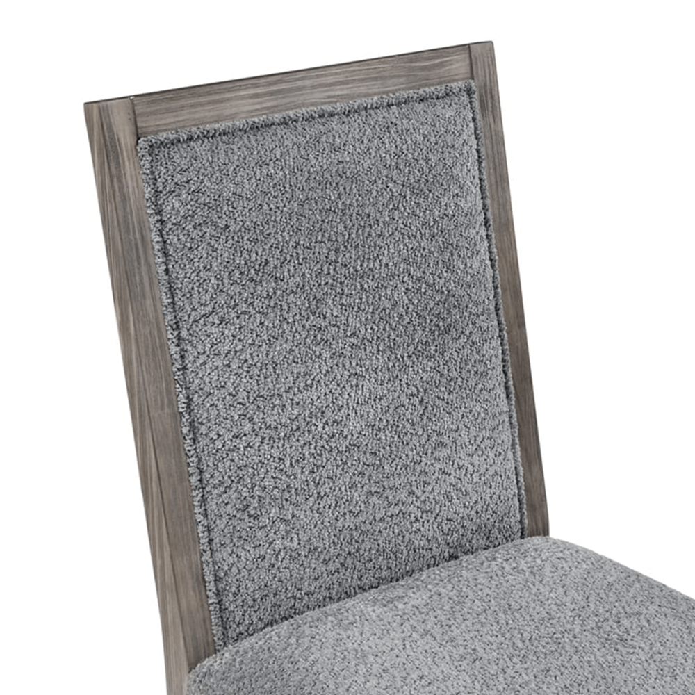 Transform your dining space with our modern 84″ x 40″ Faux Concrete Dining Table, now available for your sophisticated home. This table features a unique faux concrete design, offering an industrial yet elegant aesthetic. The sturdy wire brush base adds a rustic touch, perfectly complementing the contemporary top. Accompanying the table are stylish dining chairs upholstered in gray bouclé fabric, providing a textural and cozy seating experience. The set is further enhanced by two luxurious host chairs, designed with soft arms for added comfort, and matching gray bouclé fabric, ensuring a seamless and elegant look.