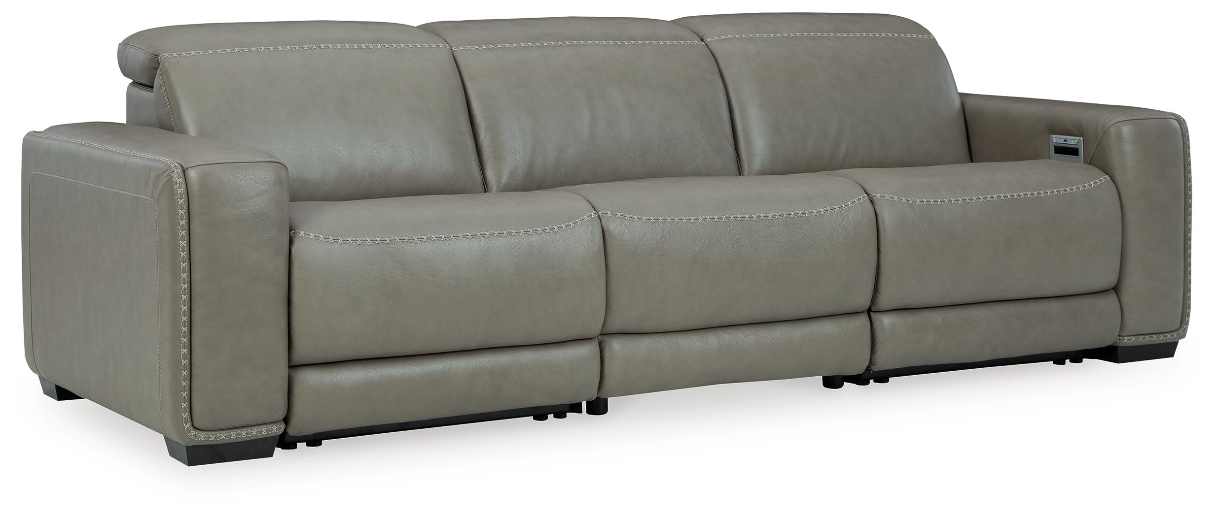 Truly putting high design into recline, this power reclining sofa proves that just because you’re a recliner doesn’t mean you have to look like one. Deceptively beautiful, its ultra clean-lined aesthetic is as cool and contemporary as they come. The low-profile back has a super-swank look. When you need more support for your head and neck, the press of a button engages the Easy View™ power adjustable headrest, designed to let you lean back and still have a primo view of the TV. Ever-so-subtle curves and stunning stitching perfect the aesthetic. Dimensions: 116.5”W x 41”D x 33.25”H Assembly Instructions: https://www.ashleydirect.com/GraphicsVault/Assembly_Instr/U9420246_AIS.PDF|https://www.ashleydirect.com/GraphicsVault/Assembly_Instr/U9420258_AIS.PDF|https://www.ashleydirect.com/GraphicsVault/Assembly_Instr/U9420262_AIS.PDF