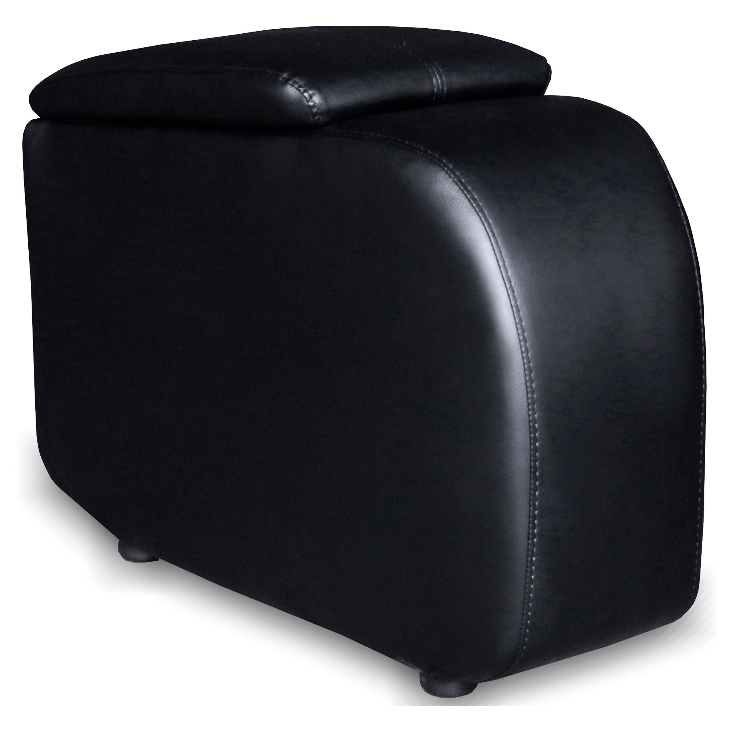 Dress up a home theater room with this sleek black console. Great for nestling between chairs, this console was designed with comfort in mind. Add extra space between recliners with the smooth front and the rounded top. Deep tones offer a clean feel to the modern silhouette. Build a set of side by side recliners for family movie night or to fill any size theater room.