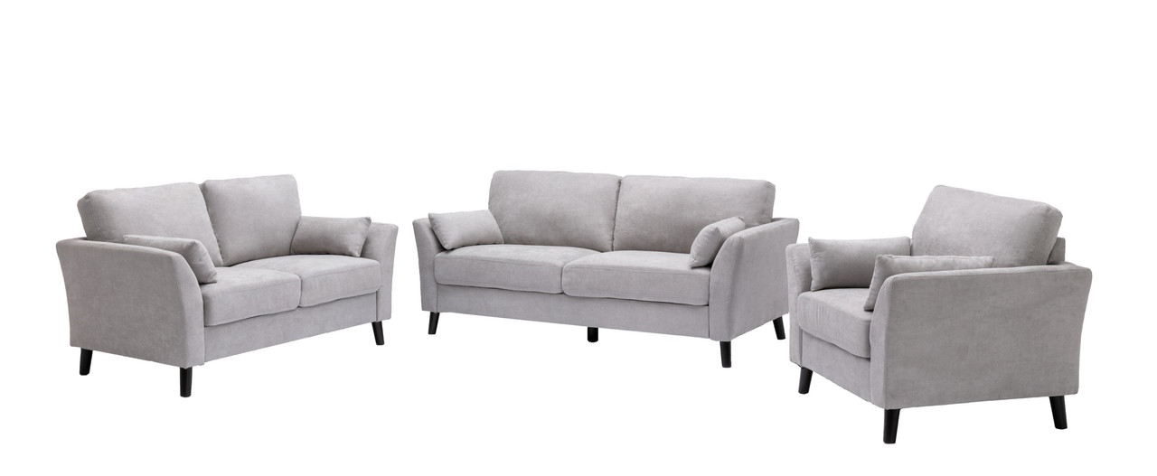 Damian Light Gray Woven Fabric Sofa Loveseat Chair Living Room Set – Lilola