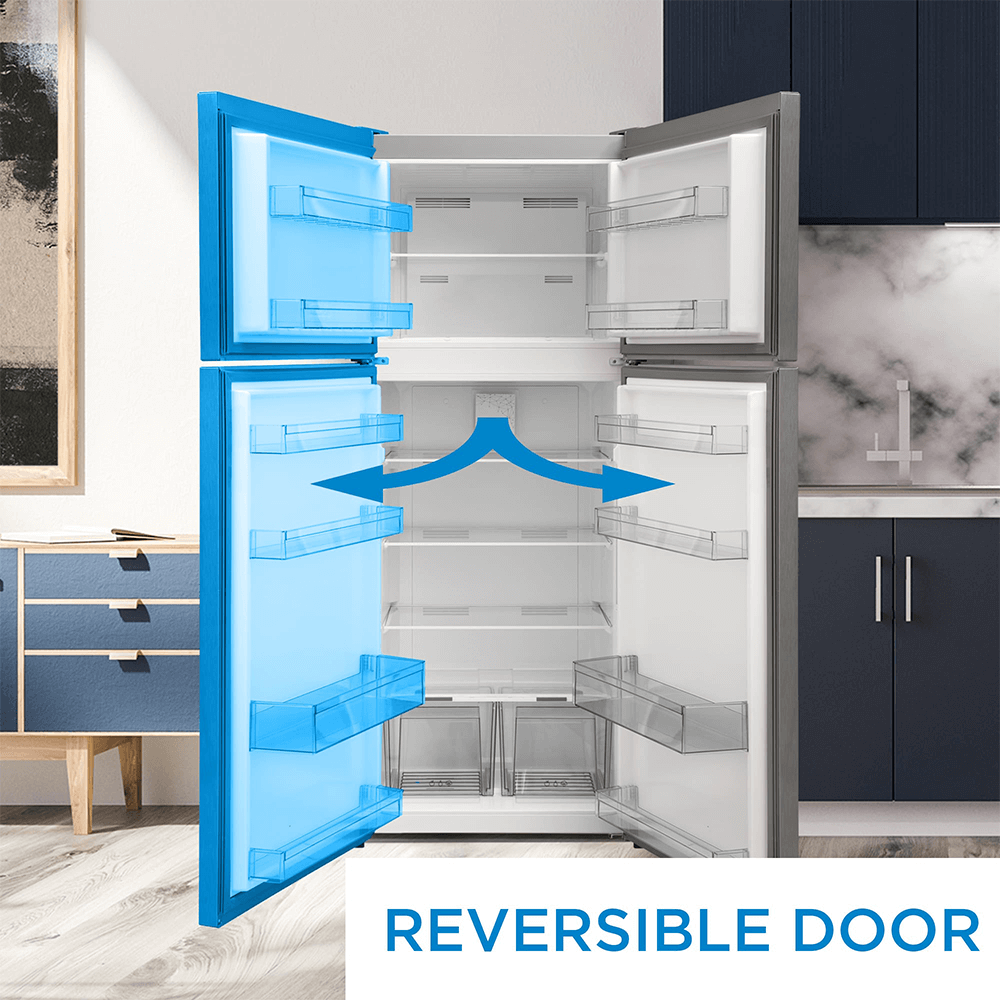 Achieve the perfect fit for your kitchen with the reversible door and zero clearance hinge feature. The flexible design allows you to adjust the door’s swing direction and ensures a seamless fit even in tight spaces. Customize your refrigerator to suit your space with ease.